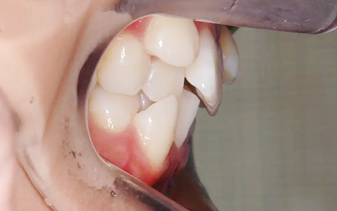 さらに、頬の内側や唇、舌などに口内炎ができることがあります。歯周病などで歯ぐきが下がっているかたは、矯正治療によりさらに歯ぐきが下がる可能性があります。重なっていた歯が整うことで、歯と歯ぐきの間に三角形の隙間ができることもあります。
