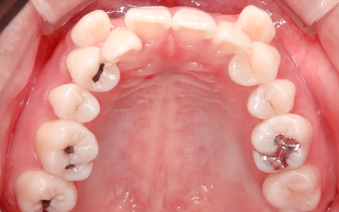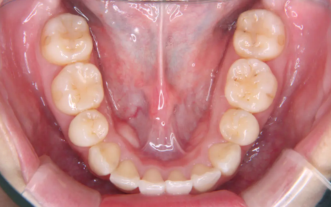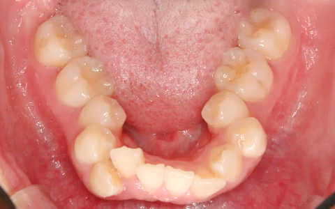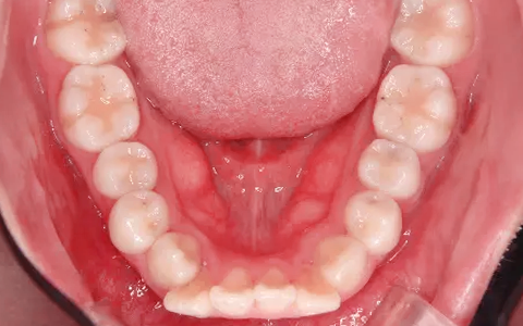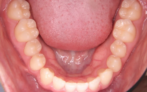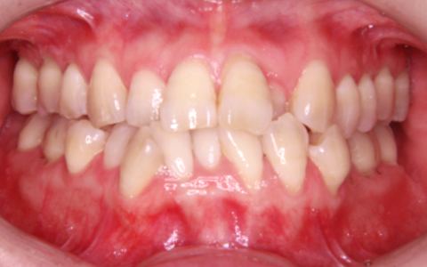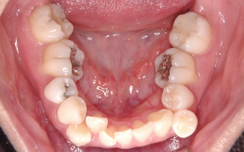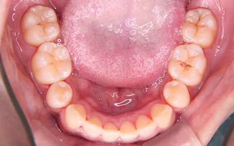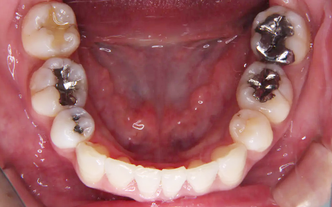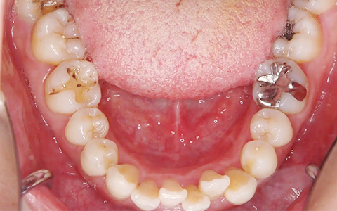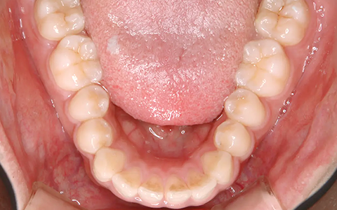 歯並びが悪い状態(叢生)の裏側矯正での治療例
