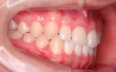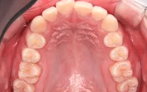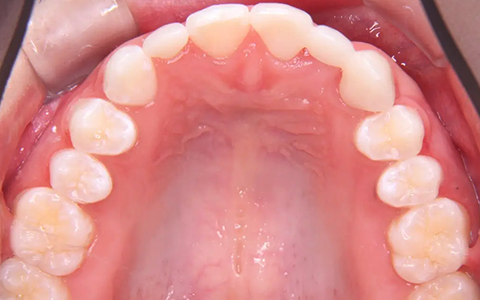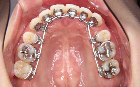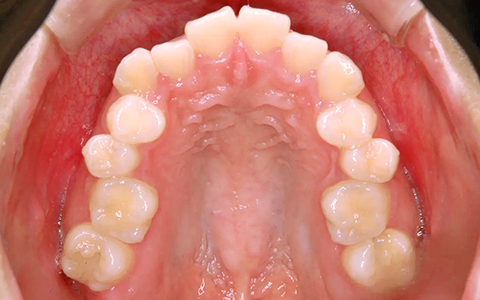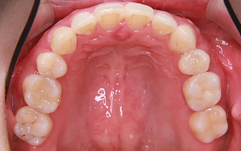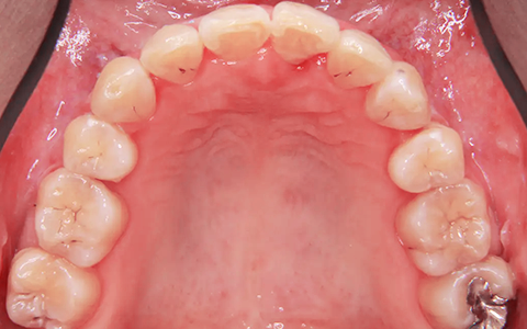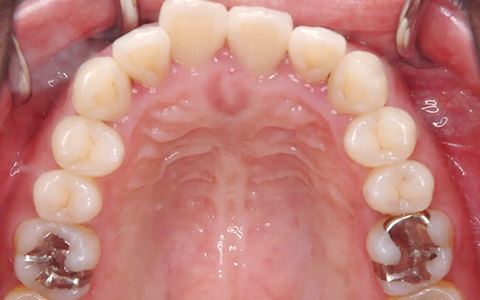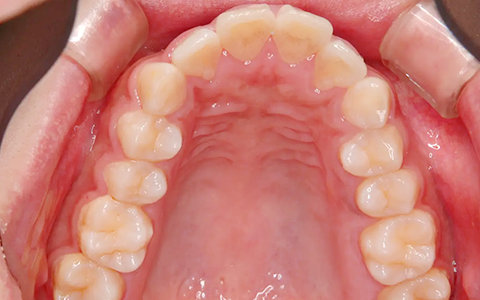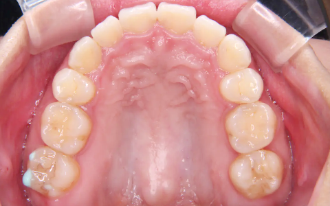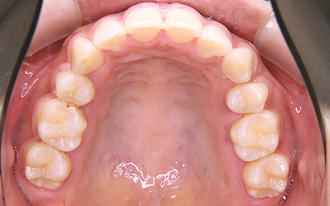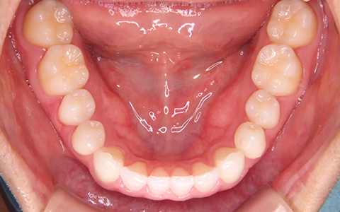 上の歯が前に出ている・歯並びが悪い状態の裏側矯正での治療例